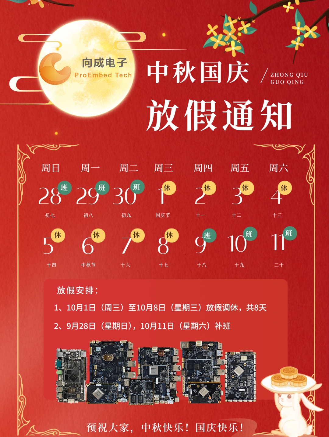 向成電子2025年國慶節(jié)及中秋節(jié)放假通知